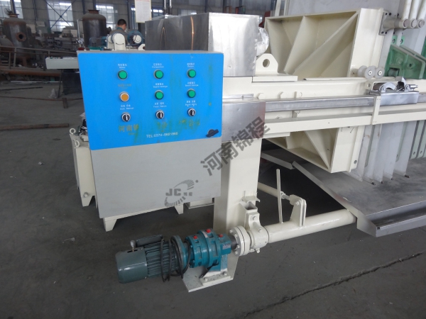 自動(dòng)曲張振打壓濾機(jī)是由機(jī)架、濾板、液壓站、自動(dòng)系統(tǒng)、曲張振打裝置等組成。
